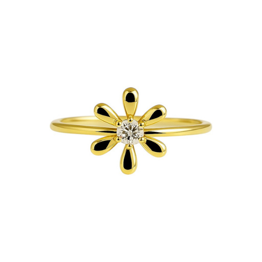 14K Solid Gold Flower Design Fashion Diamond Ring