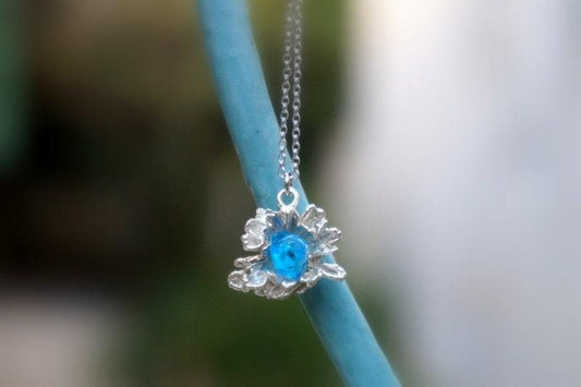 Pressed Daisy Pendant Necklace: Gold on Sterling Silver with Blue Murano