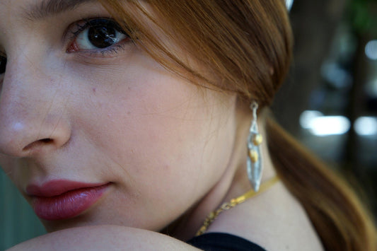 Silver Olive Leaf Earrings, Sterling Silver Jewelry with Gold Detail, Dangle Earrings, Handmade Jewelry, Gift for Her, Boho Fashion