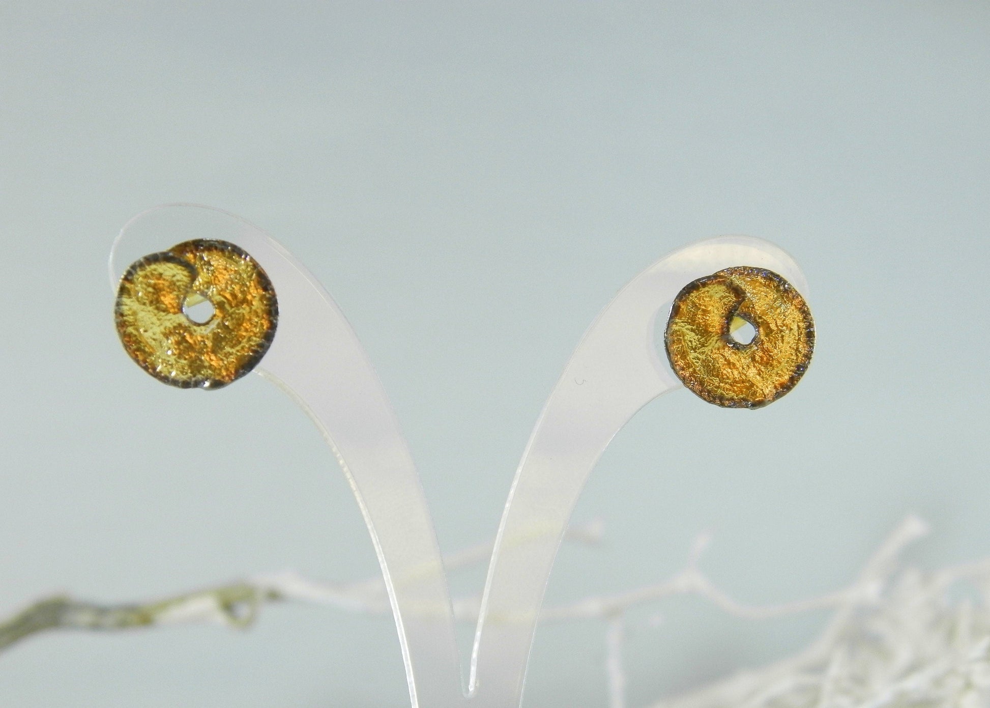 Leaf Stud Earrings: Real Plant Detail - Gold & Black Rhodium
